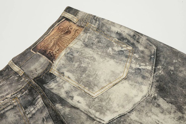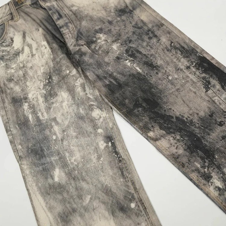 AC style inkjet graffiti distressed loose wide-leg casual jeans-4920
