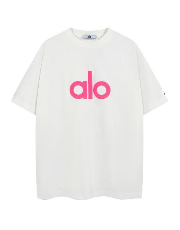 Home > ALO Foamed Letter Hot Stamped Silver Short-Sleeved Crew Neck T-Shirt-5096
