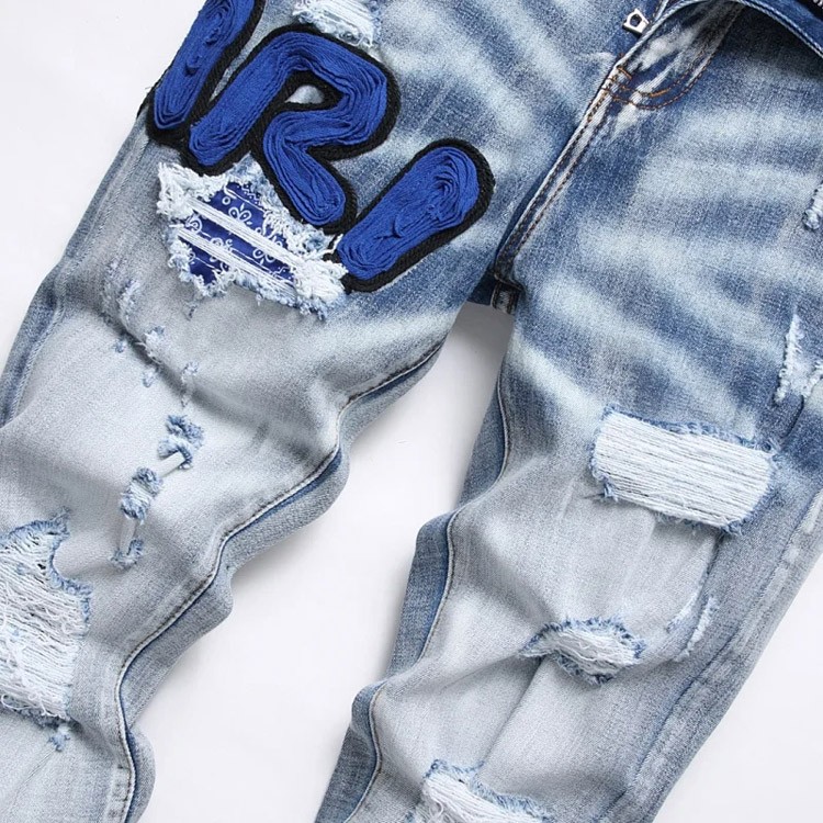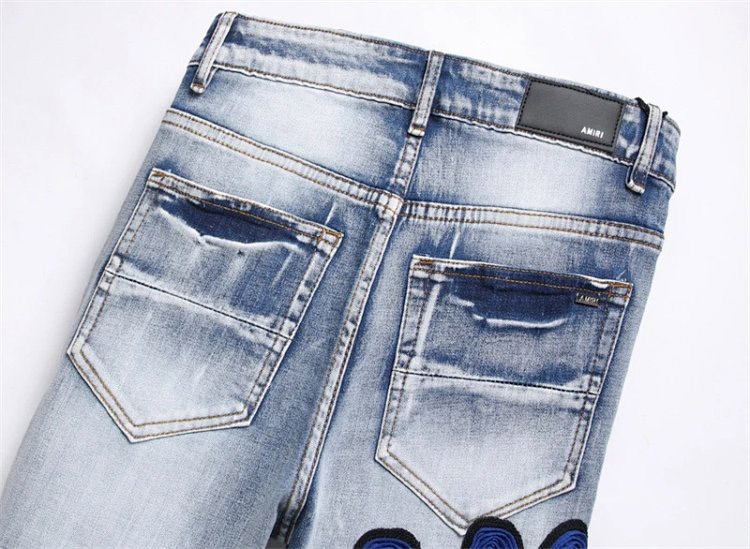 Amiri Embroidered Distressed Ripped Stretch Jeans-4924