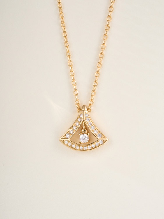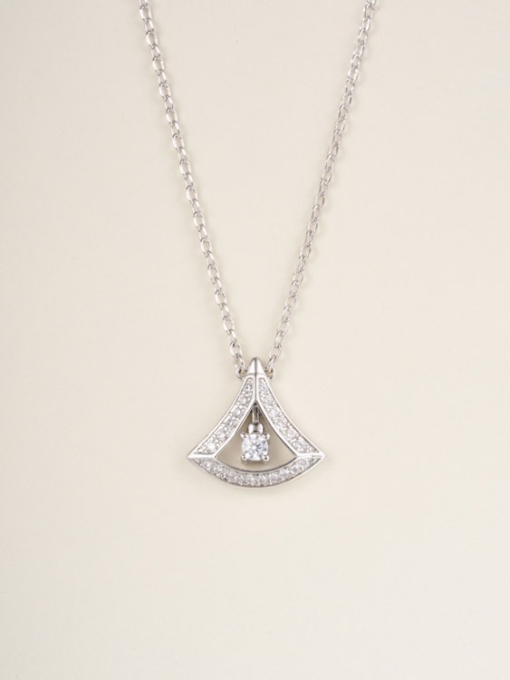 Bulgari platinum full diamond fan necklace-3609