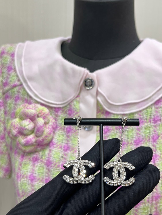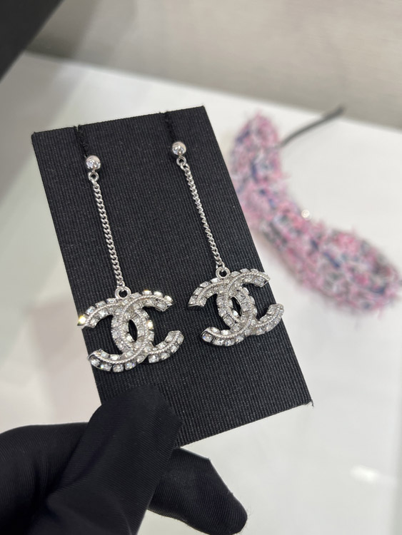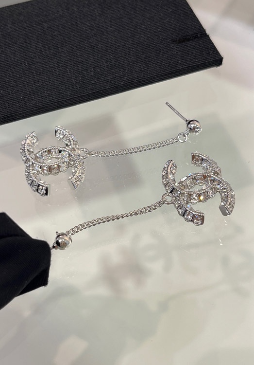 Home > Celine double-sided diamond double C pendant long chain earrings-3902