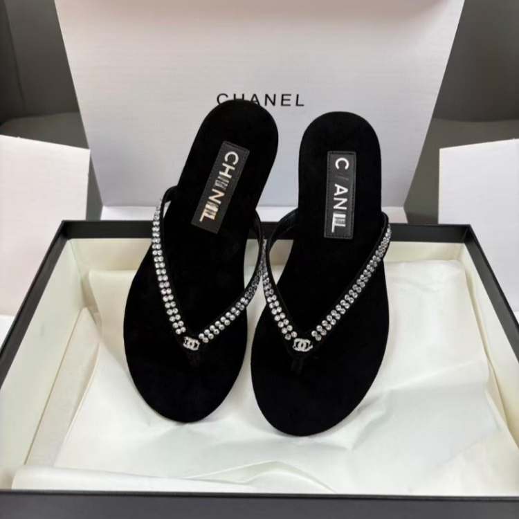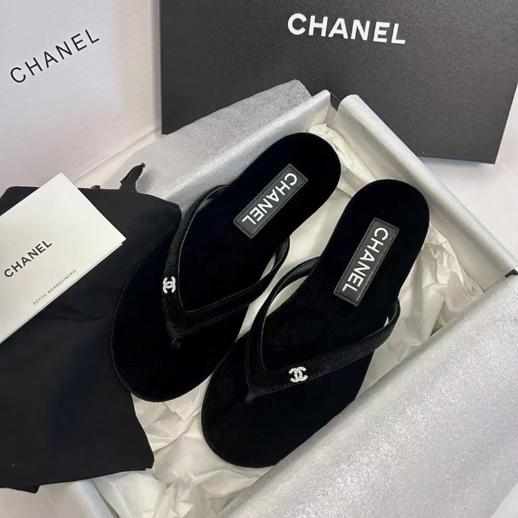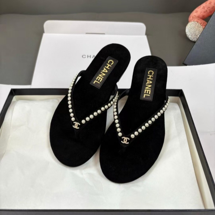 Home > Chanel rhinestone and pearl embellished velvet flat thong sandals-5697