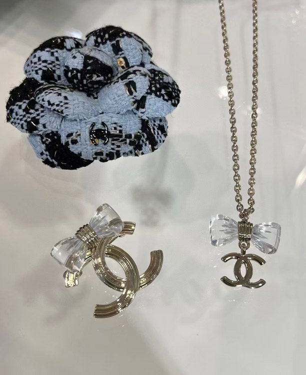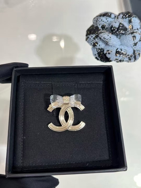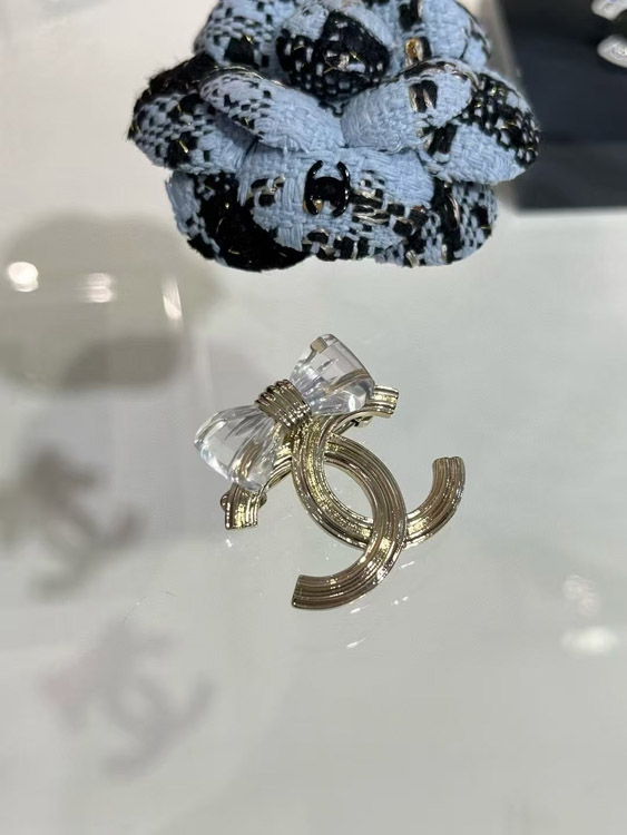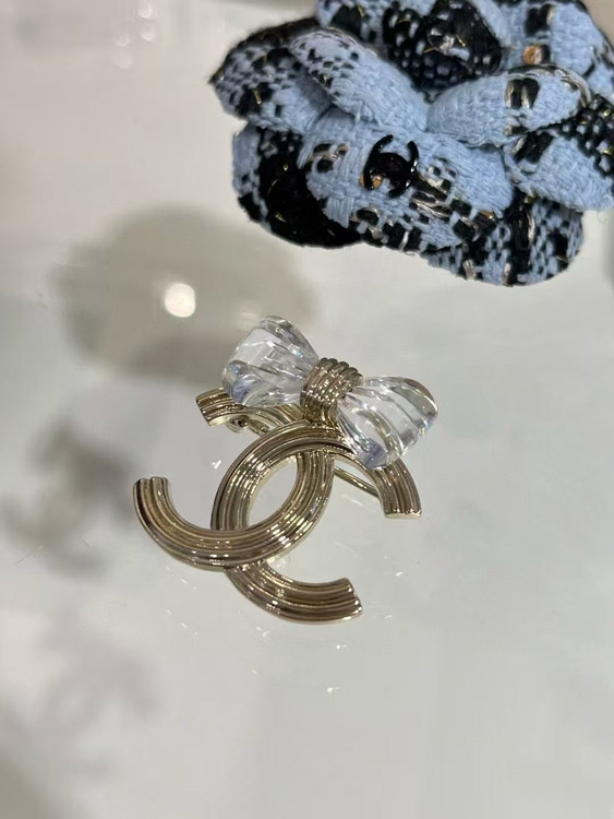 Home > Chanel transparent acrylic bow gold double C brooch-3751