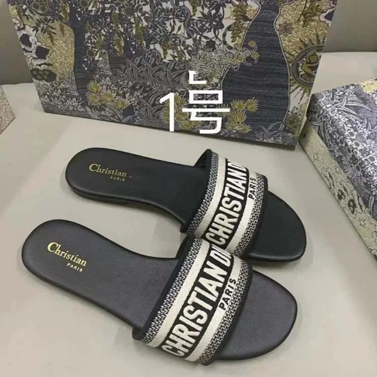 Dior 2025 new summer genuine leather letter embroidered outerwear women's slippers-2336