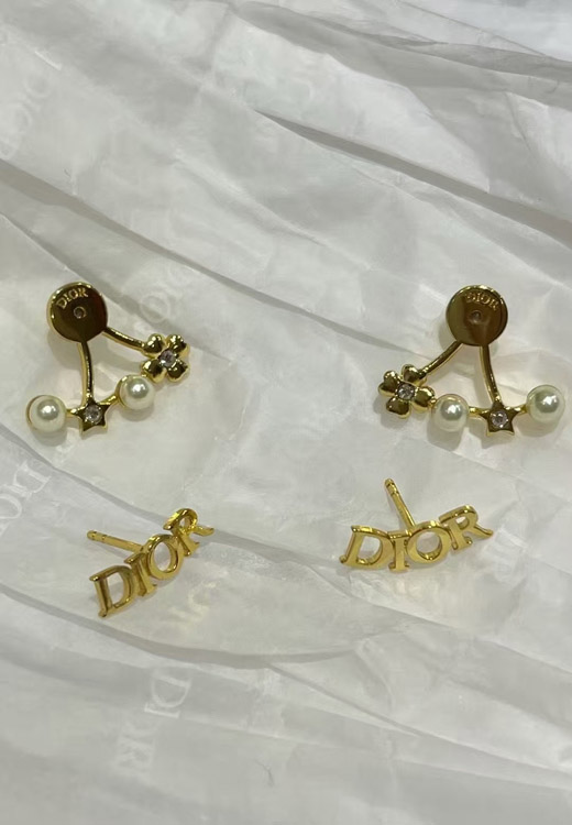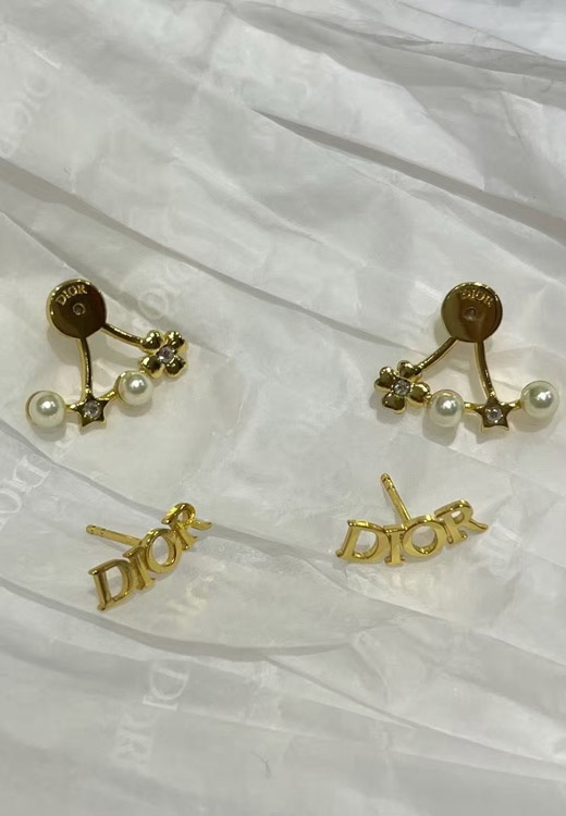 Dior gold star pearl double ball earrings-4017