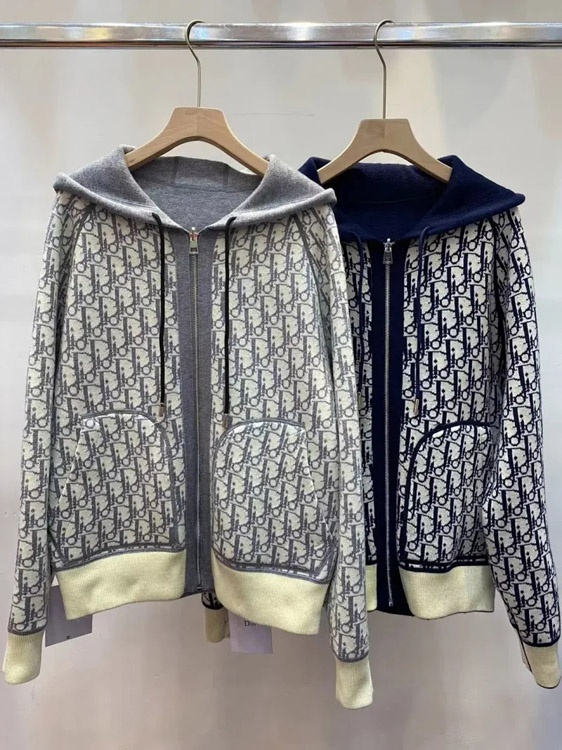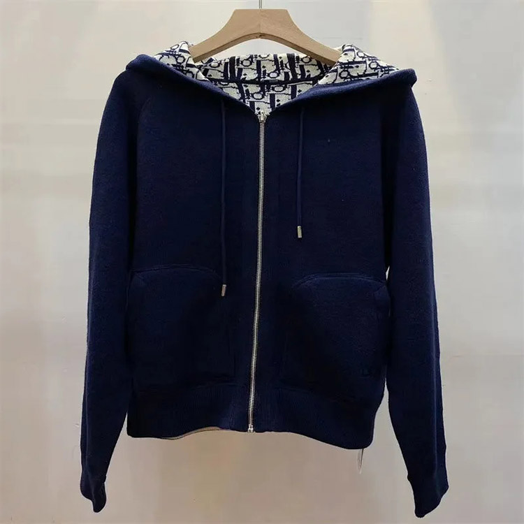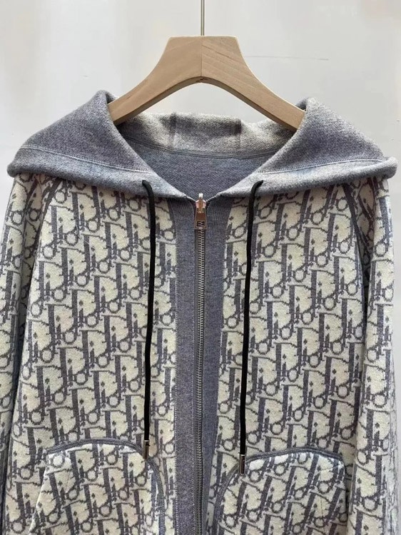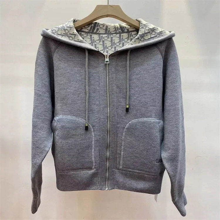 Dior reversible hooded zip-up cardigan-4864