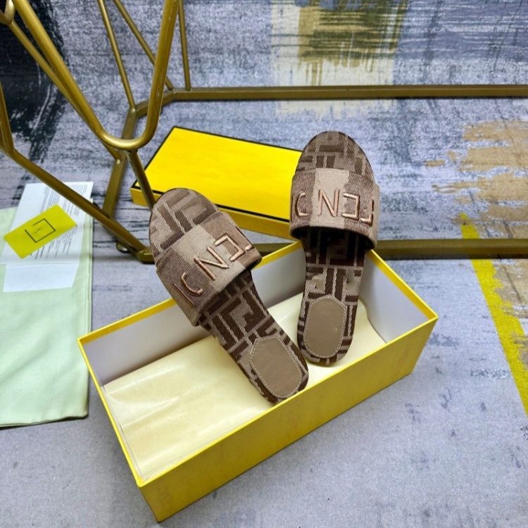 Fendi embroidered denim flat slide sandals-5760
