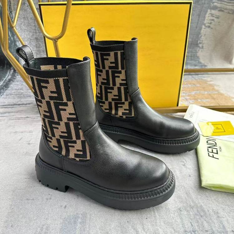 Fendi mid-calf round-toe embroidered letter combat boots-5767