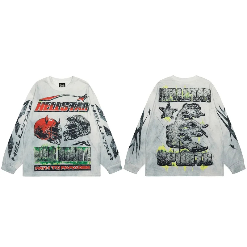 Hell Star Base Layer Long Sleeve Loose Distressed Sweatshirt-5533