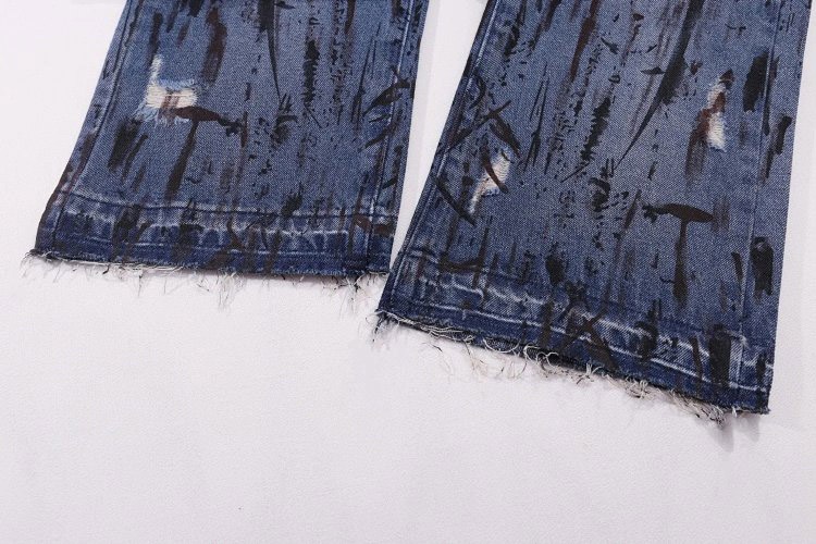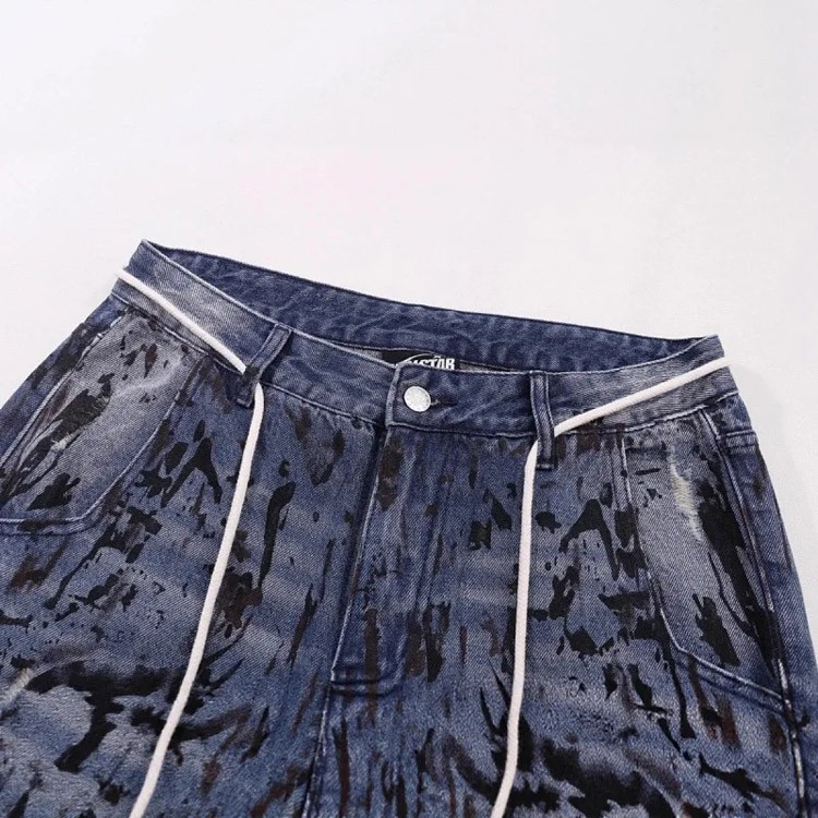 Home > Hellstar Splatter Graffiti Monkey Washed Blue Casual Loose Straight Jeans-4946