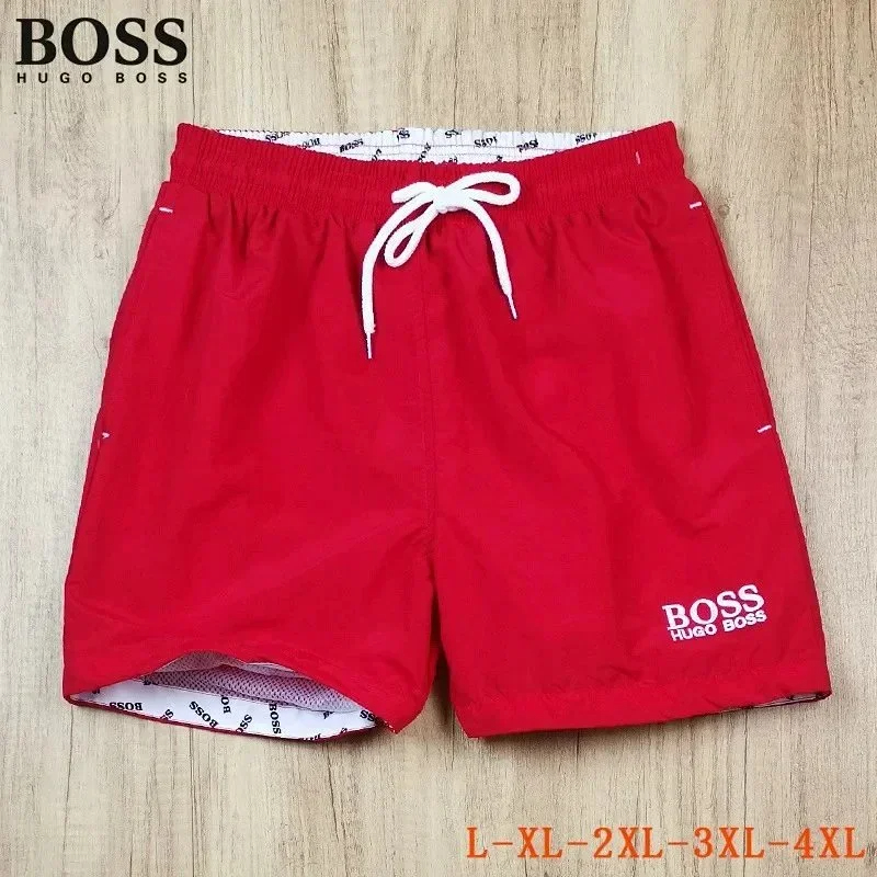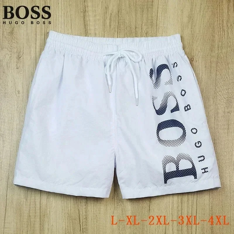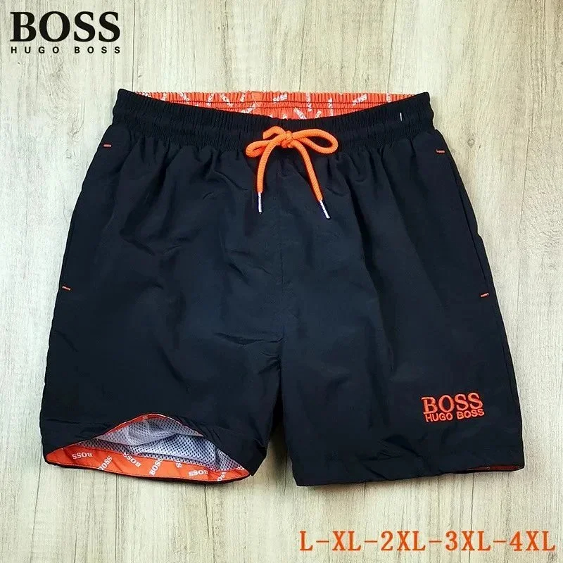 Home > HUGO BOSS logo print quick-dry contrasting color waistband drawstring swim shorts-2881