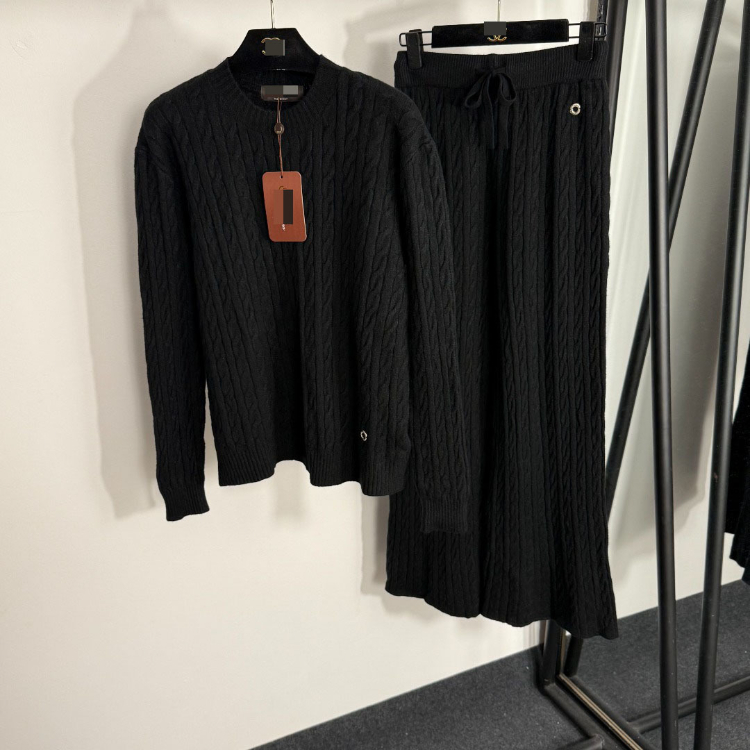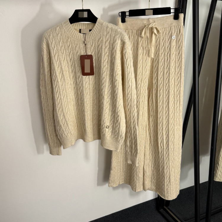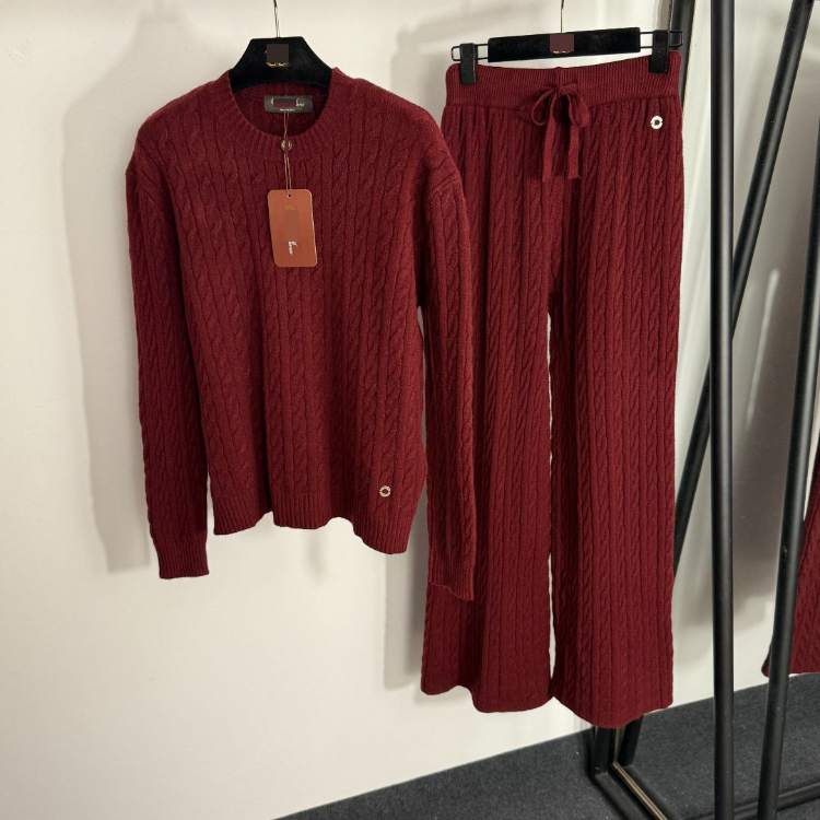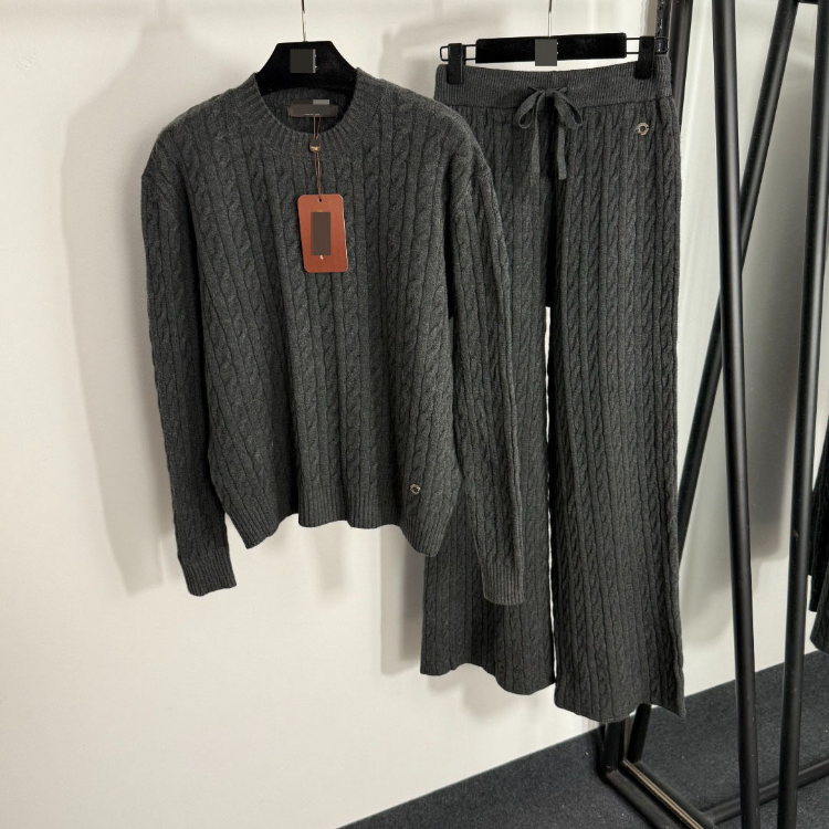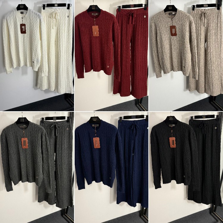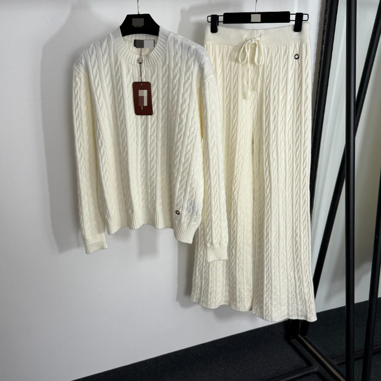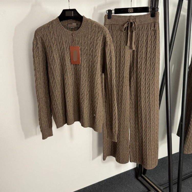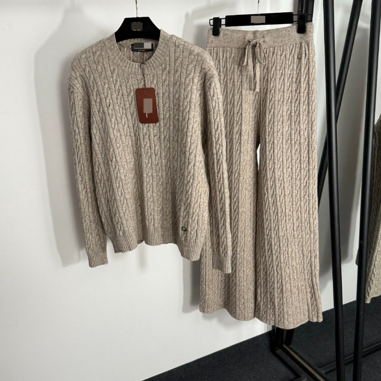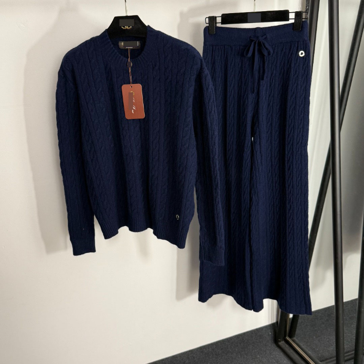Home > Loro Piana high-end knitted cable-knit striped sweater and wide-leg trousers-5401