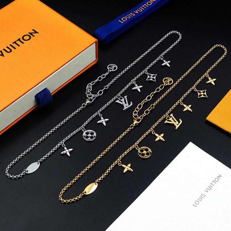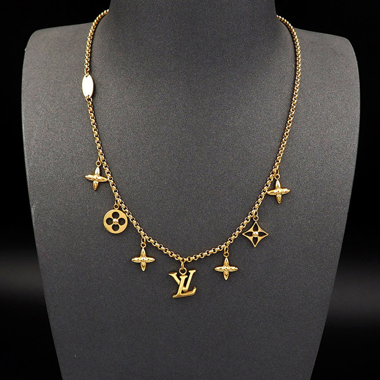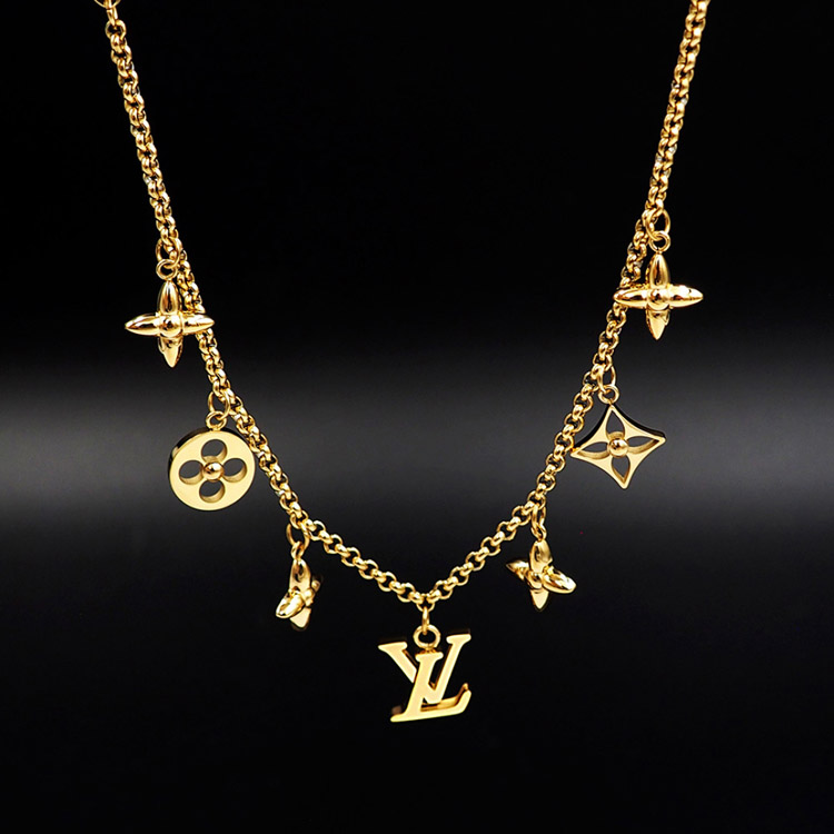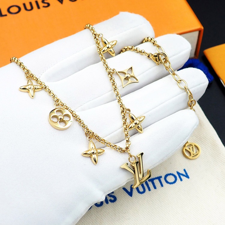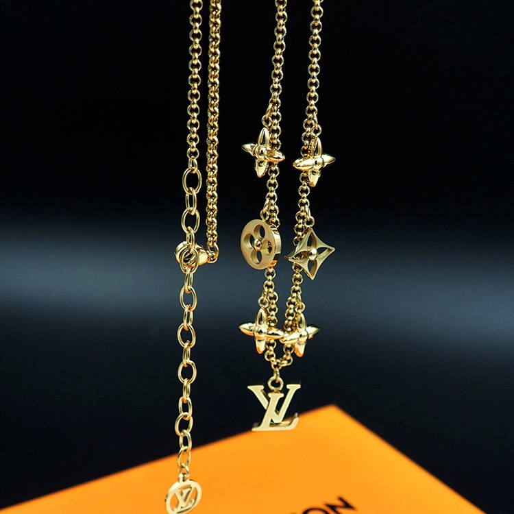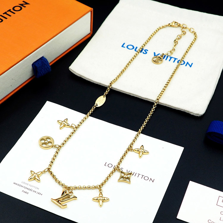 Louis Vuitton LV Adjustable Letters and Floral Gold Necklace-4073
