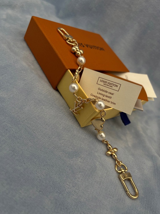 Louis Vuitton LV black charm resin pearl heart-shaped flower pendant chain bag decoration pendant-3762