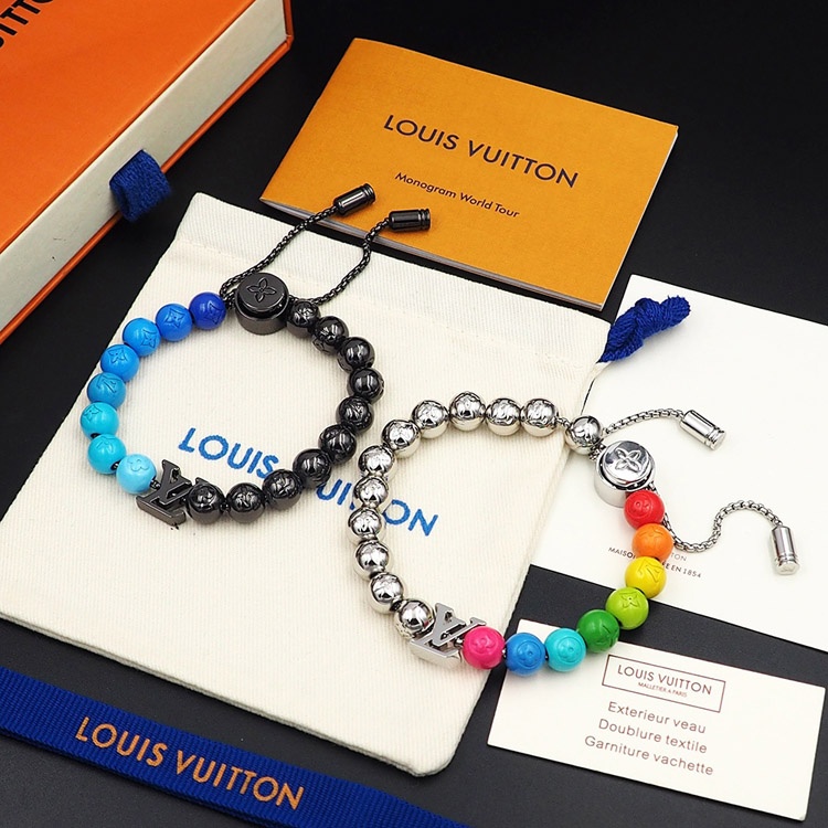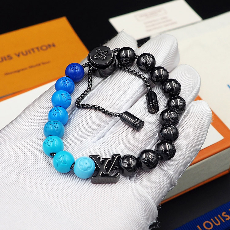 Louis Vuitton LV blue letter incarnation pendant and inscription on polished metal beads Bracelet-3948