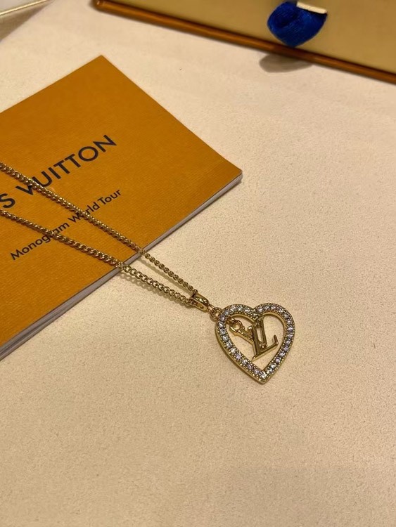 Home > Louis Vuitton LV gold letter hollow diamond heart necklace-3725