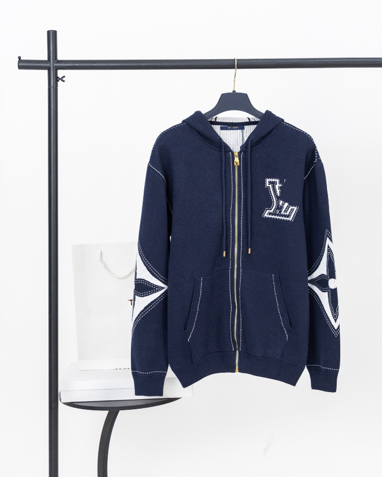 Louis Vuitton LV new knitted intarsia clover pattern casual loose zip-up cardigan jacket-5307