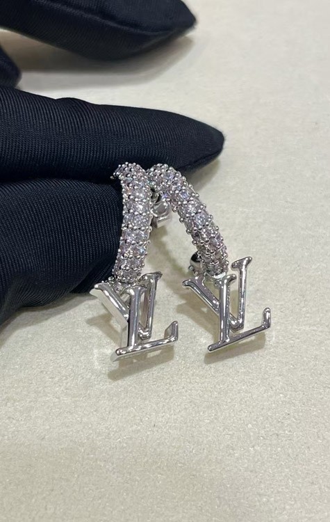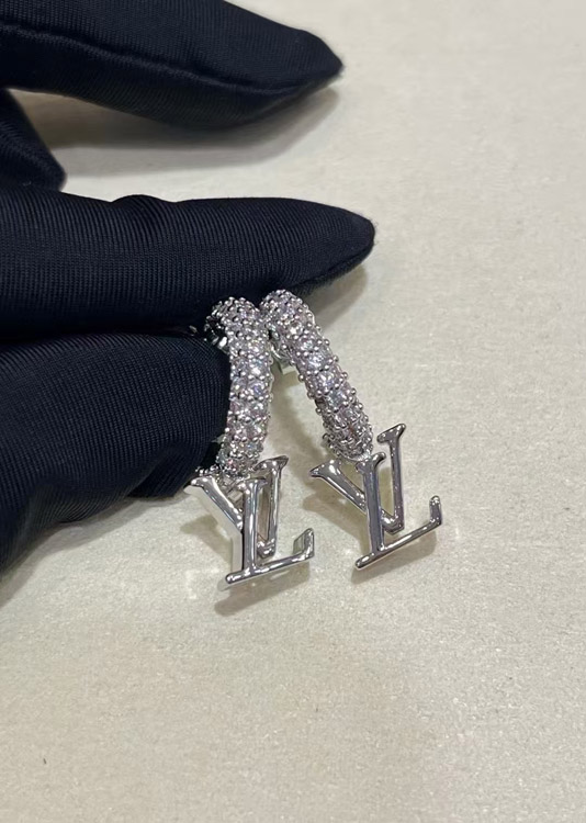 Home > Louis Vuitton LV silver letter small pendant full diamond earrings-3723