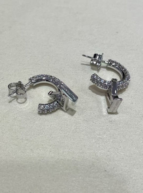 Louis Vuitton LV silver letter small pendant full diamond earrings-3723