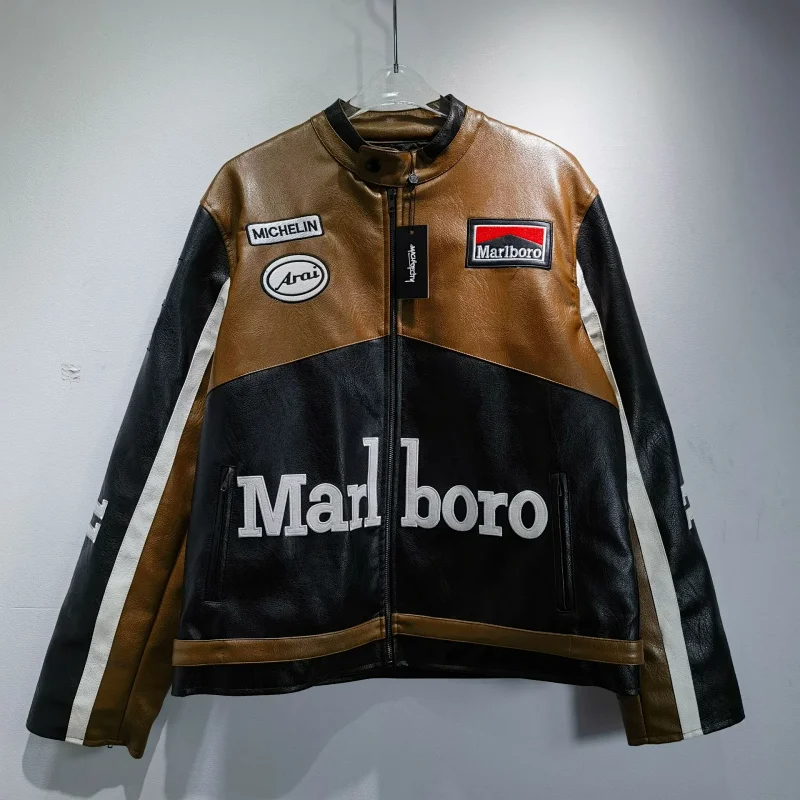 Home > Marlboro Aime Leon Dore Leather Zipper Baseball Jersey-5517