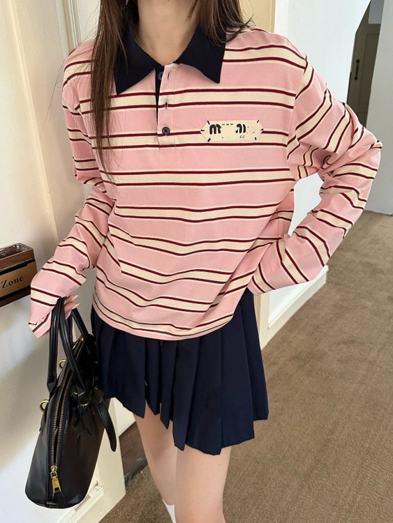 Miu Miu's new collared patchwork casual versatile polo shirt T-shirt-5371