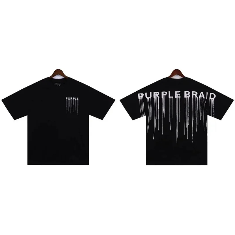 Puerple letter dripping print short-sleeved T-shirt for men and women loose cotton-1801