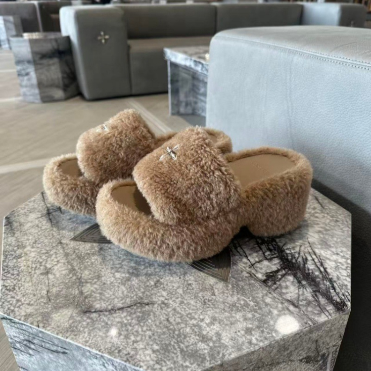 SMFK Non-slip Platform Wedge Velvet Slippers-5696