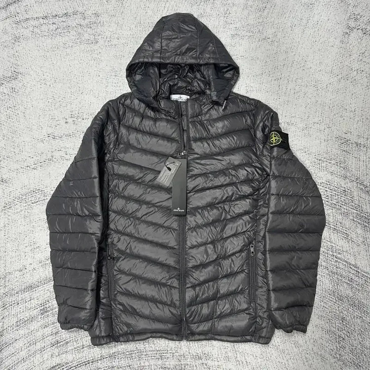 Stone Island zipper quilted design hooded down jacket-4386