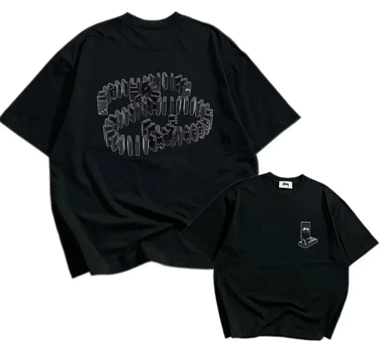 STU Summer flame poker print casual couple short-sleeved T-shirt(32 styles)-1877