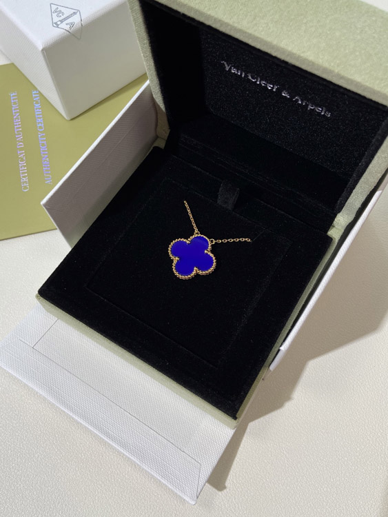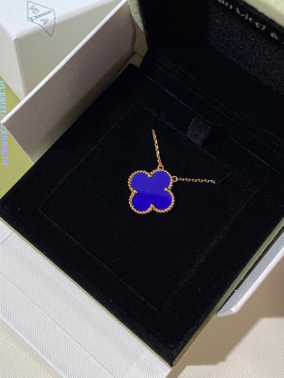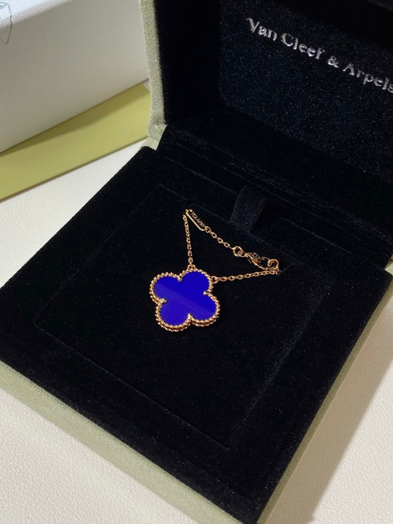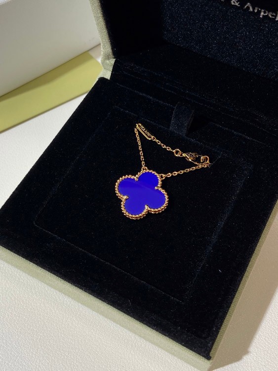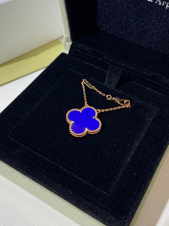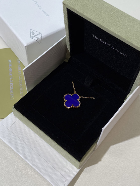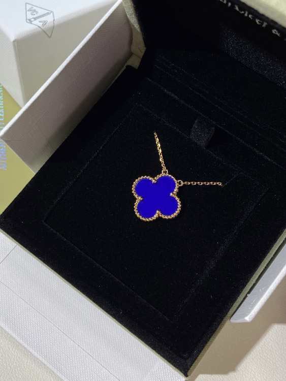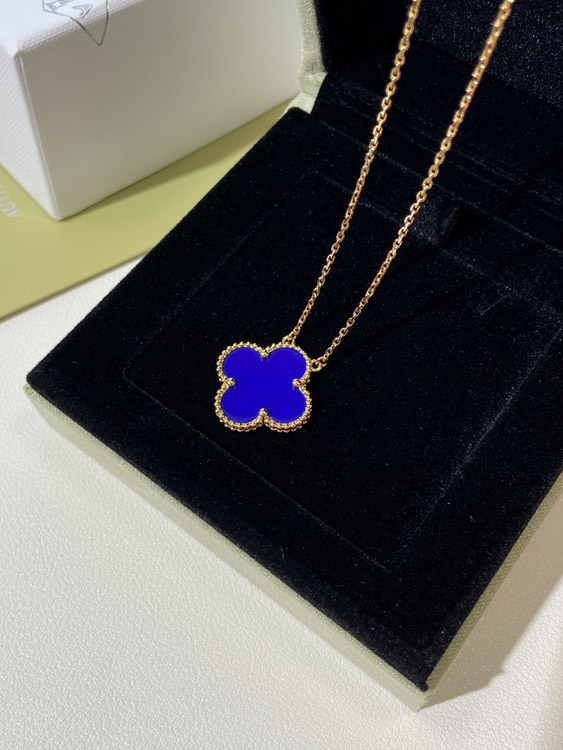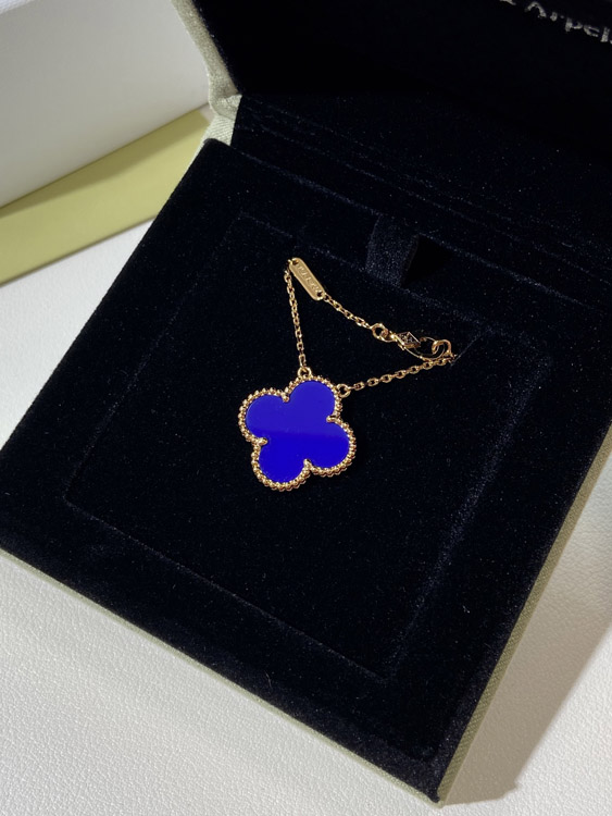 Van Cleef & Arpels four-leaf clover gold blue obsidian wide necklace-3791