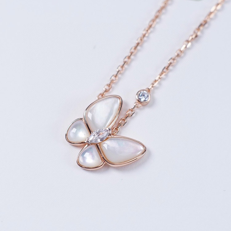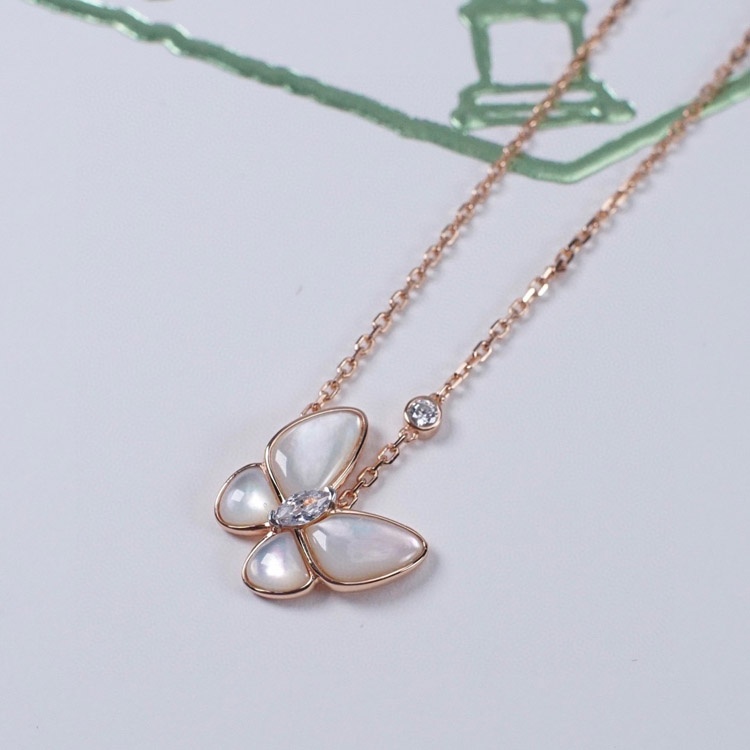 Van Cleef & Arpels Gold and White Mother-of-Pearl Butterfly Necklace-3694