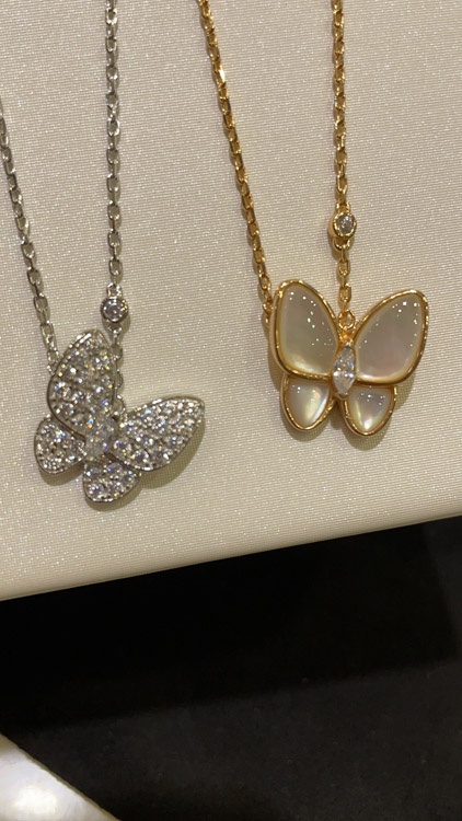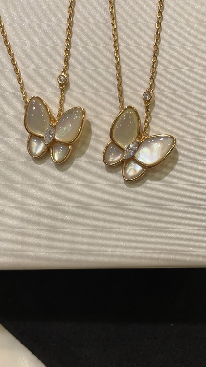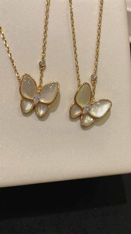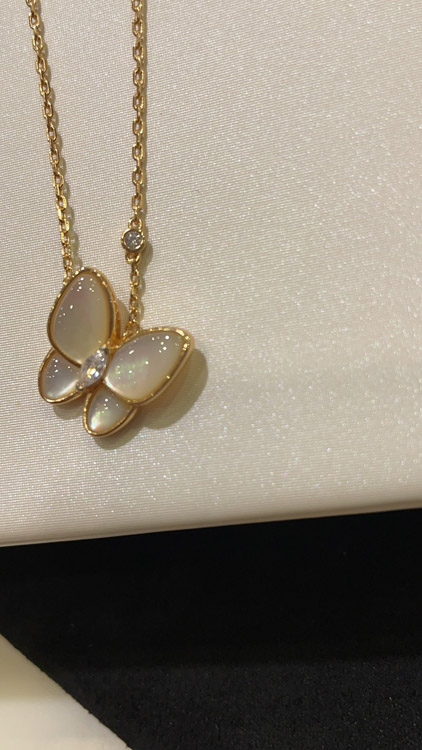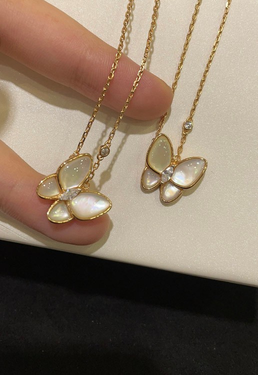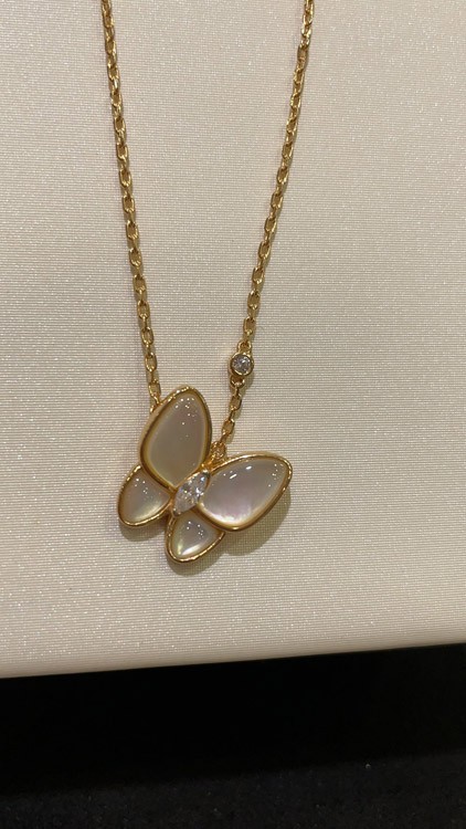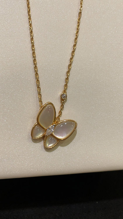 Home > Van Cleef & Arpels White Mother-of-Pearl Diamond Floral Butterfly Necklace-3733